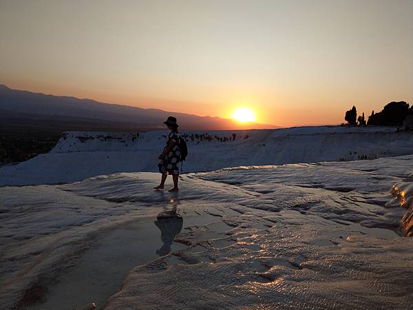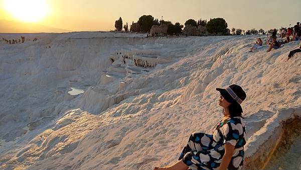 棉堡(pamukkale)看起來像一座軟綿綿的白色城堡,其實是含鈣的溫泉水,冷卻之後沈積變成的石灰岩層。